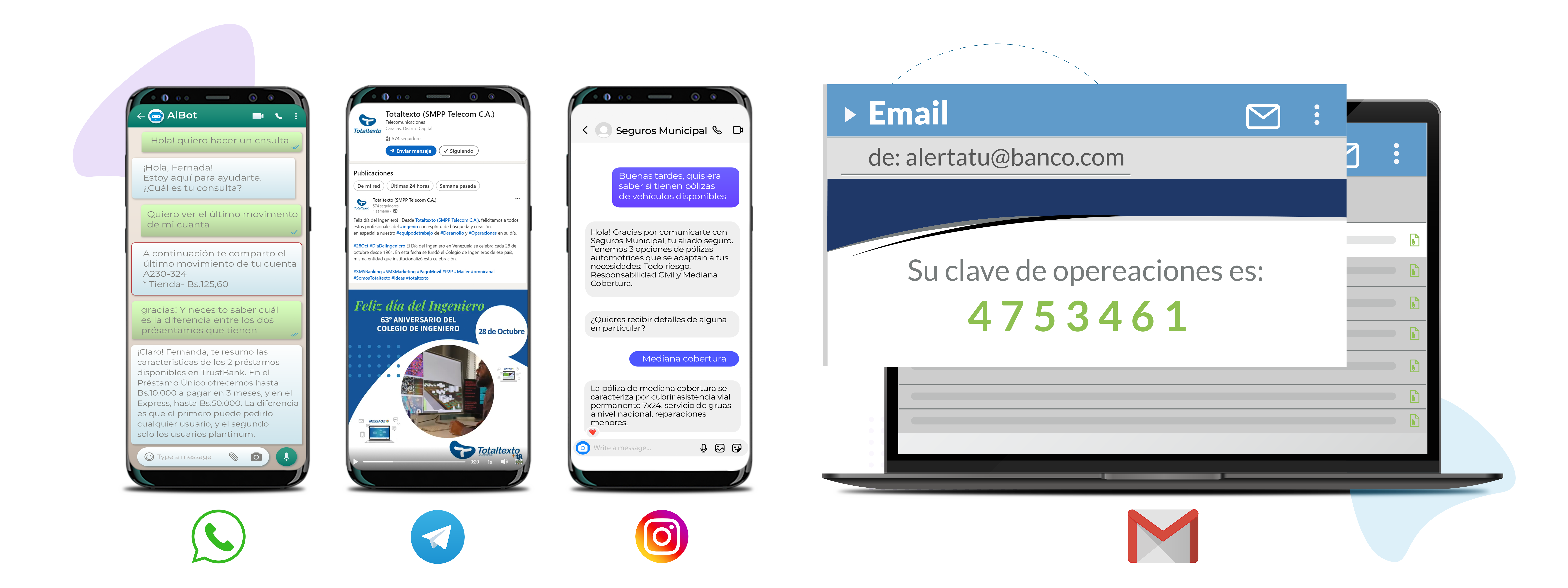 Totaltexto es pionero en mensajería SMS bancaria en Venezuela. Desde la llegada del Pago Móvil Interbancario (P2P) para resolver problemas de pago en efectivo, Totaltexto procesa más de 150 millones de notificaciones bancarias al mes.